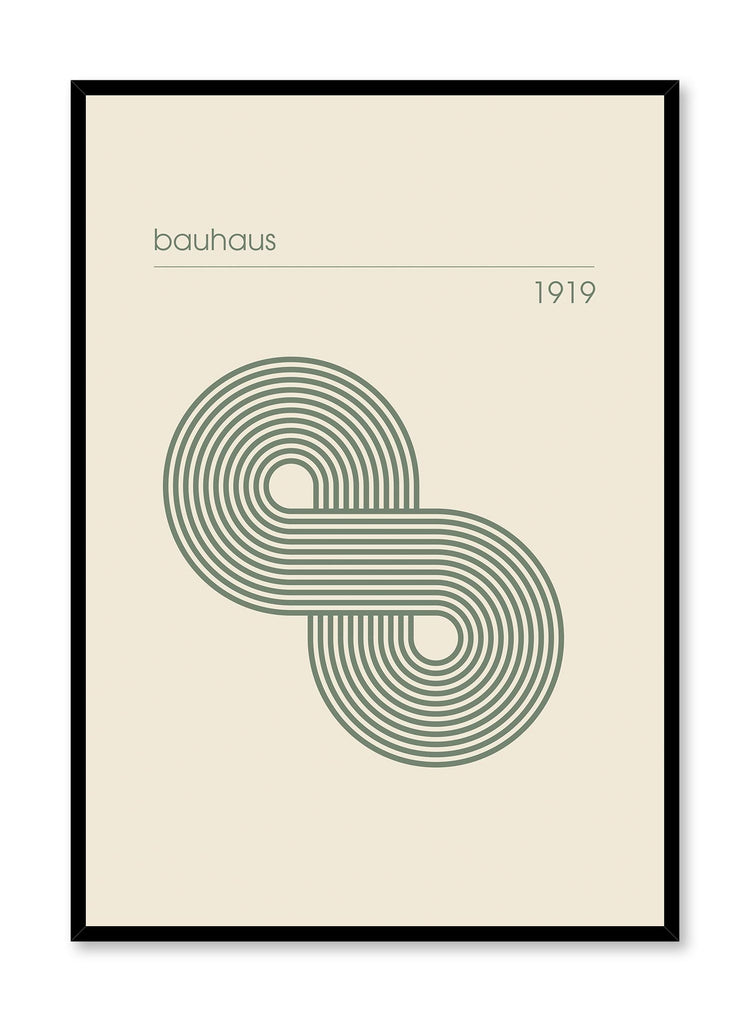 We’ll love the Marli poster to infinity and beyond! This bauhaus style design features a striped infinity sign in green over a beige background. A mid-century modern typography with the word Bauhaus and the date 1919 completes this lovely vintage art print.