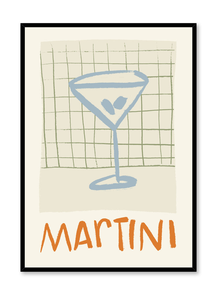 We’ll take one Martini to sip on and another to hang up! ‘Martiniville’ is an illustration of a blue Martini glass in front of a green checkered background with the word ‘Martini’ written in bold red lettering.