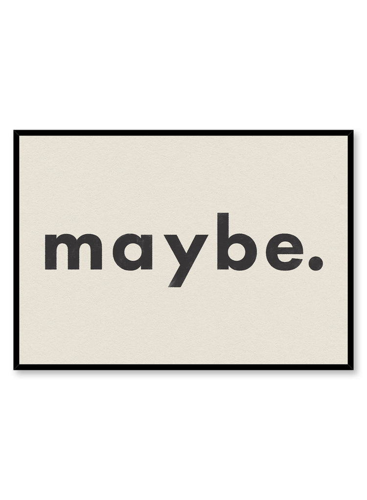 This artwork features a single word, 'maybe,' in lowercase, displayed in a bold, sans-serif black font.