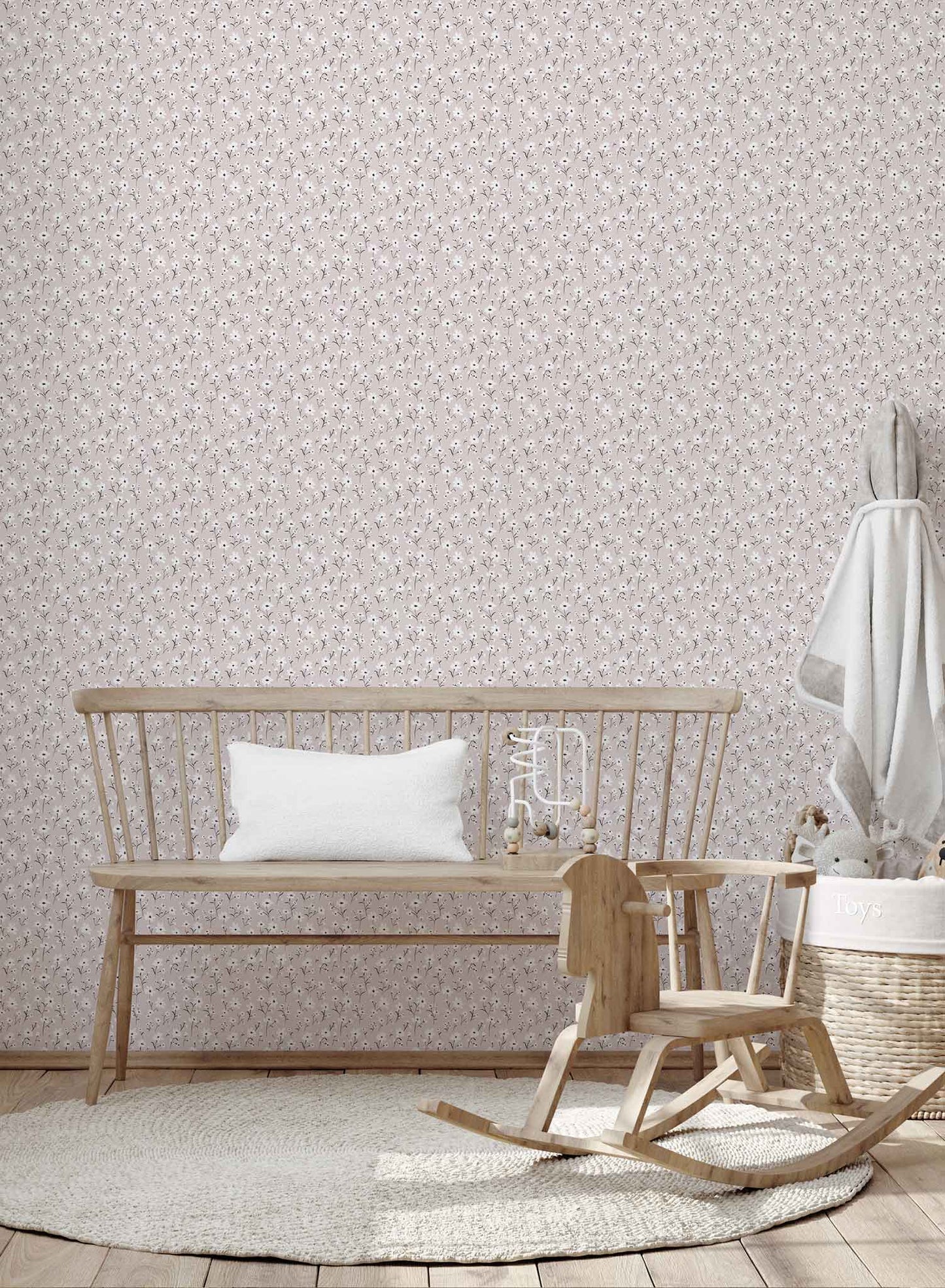 Inspired by a beautiful floral meadow, this vintage and feminine wallpaper is sure to please all the romantics at heart! With its delicate white flowers and soft colors, the Meadow wallpaper would look beautiful in any home decor. Find it in peel & stick and pre-pasted formats today.