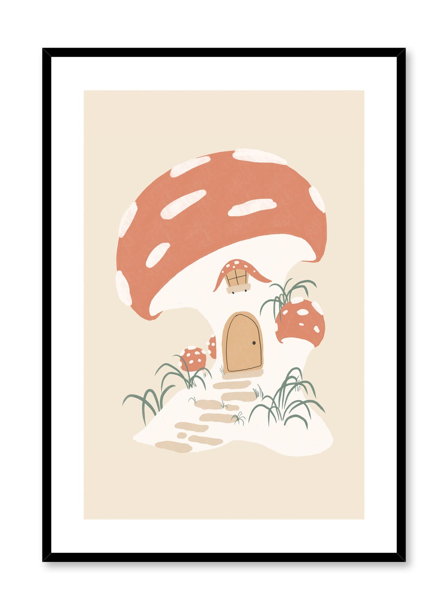• Mushroom House is a minimalist illustration by Opposite Wall of a big red mushroom house resembling those in cartoons.