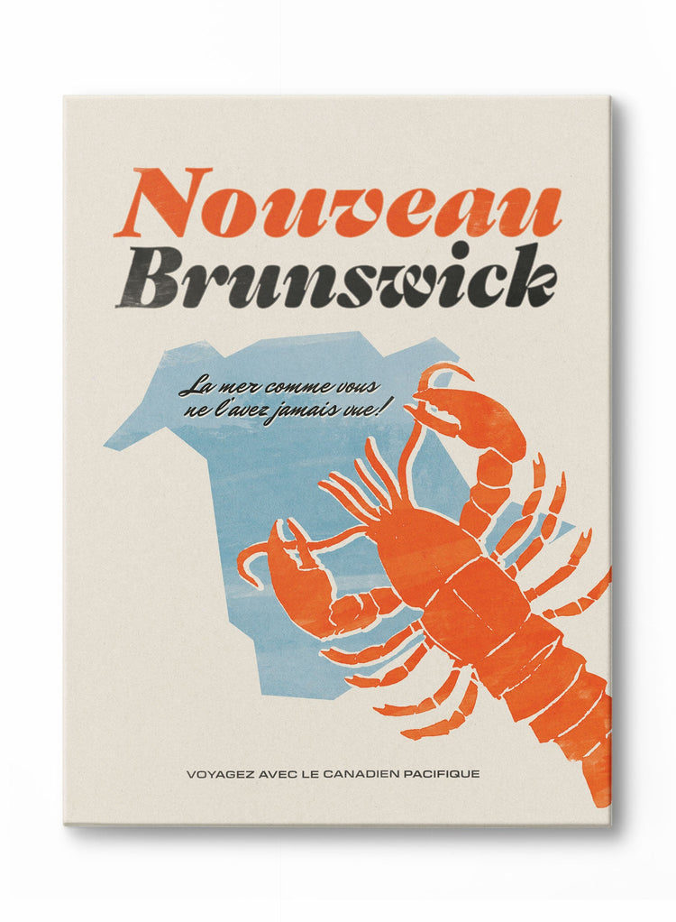 Two things you can expect from New Brunswick? Fresh lobster and fun times! This orange, blue and beige canvas includes a watercolor lobster and vintage lettering.