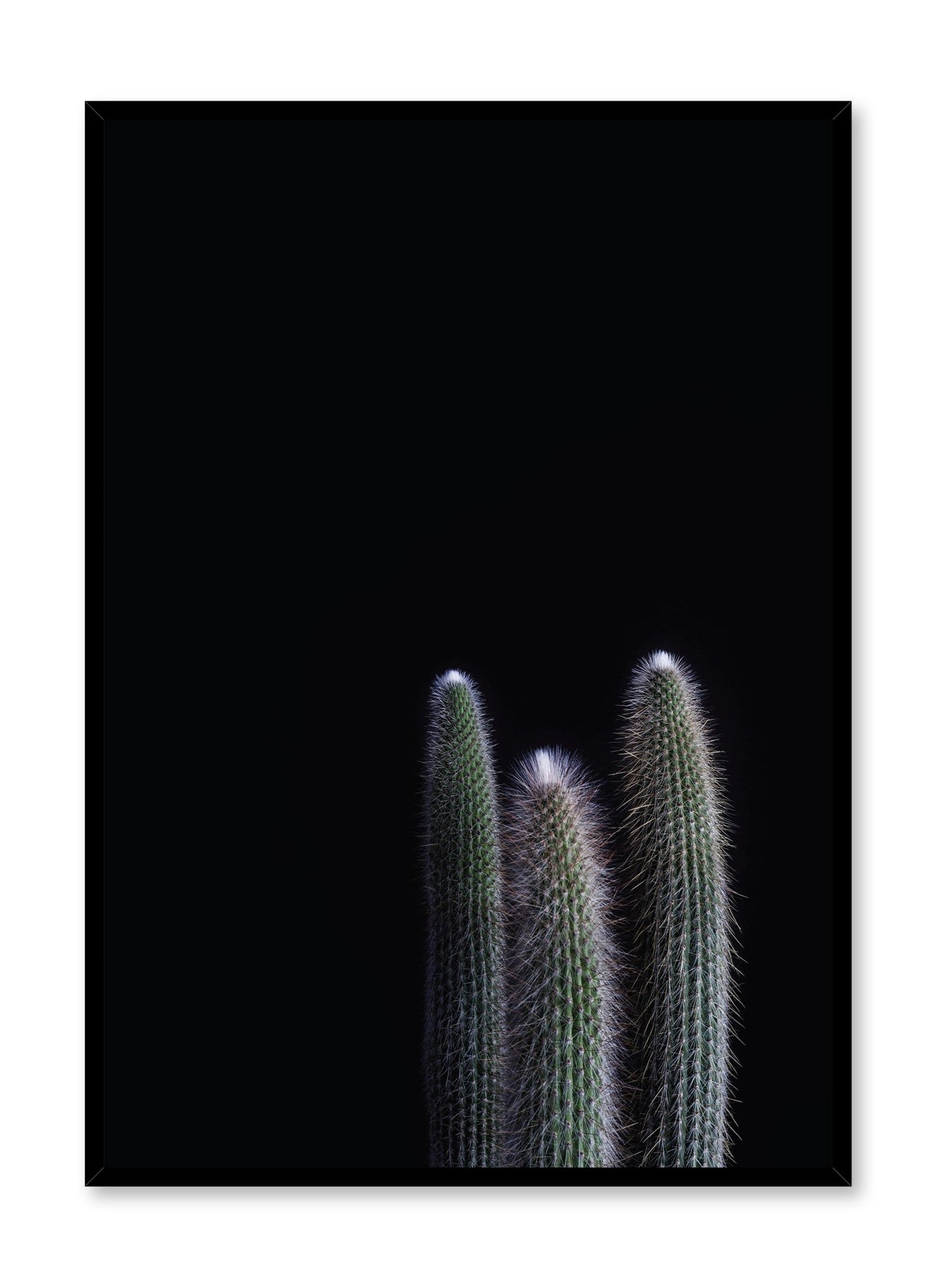 A three-headed Cléistocactus is intriguing, springing upward from below.