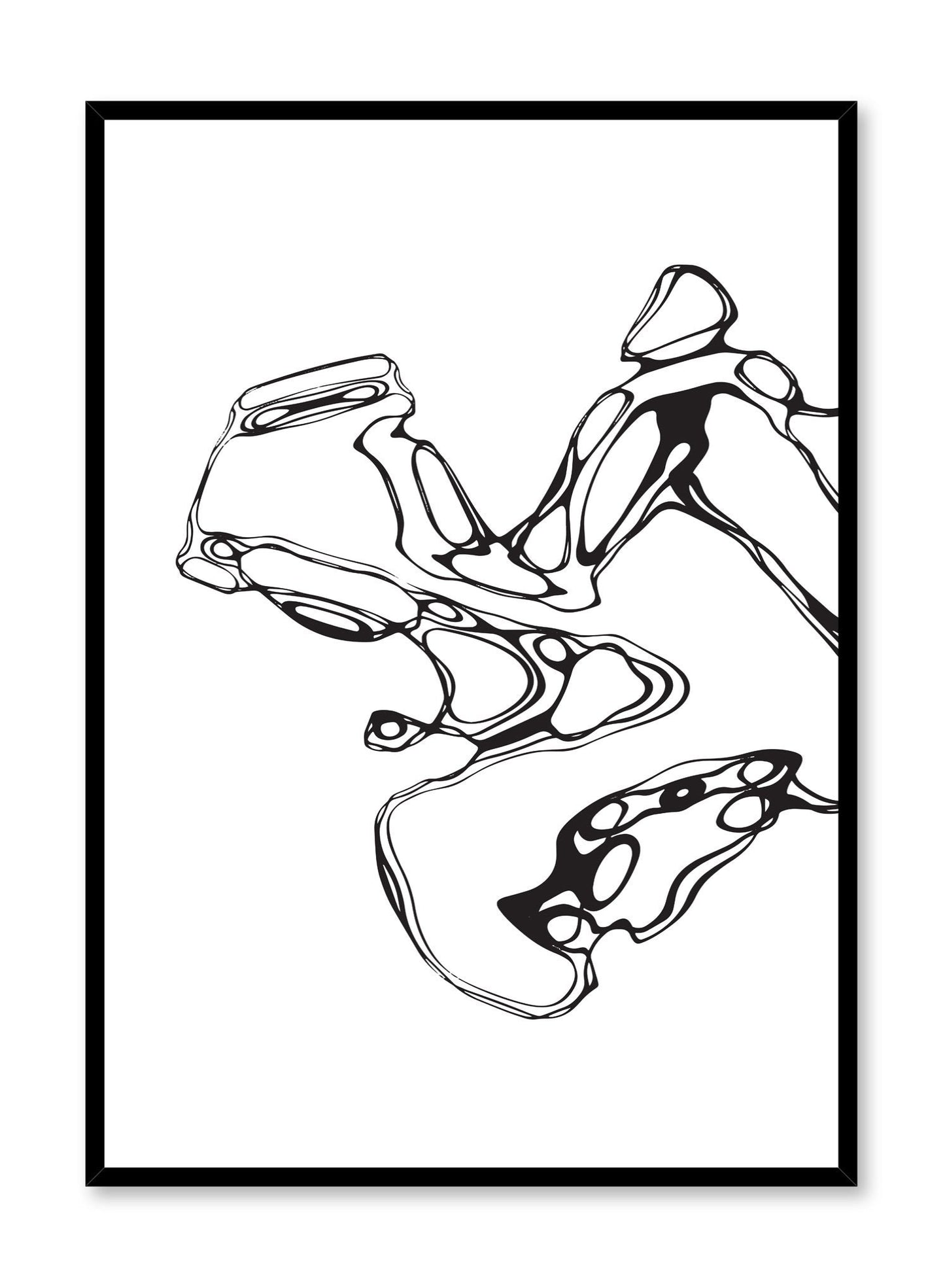 Black and white lines swirl and mingle like oil and water.