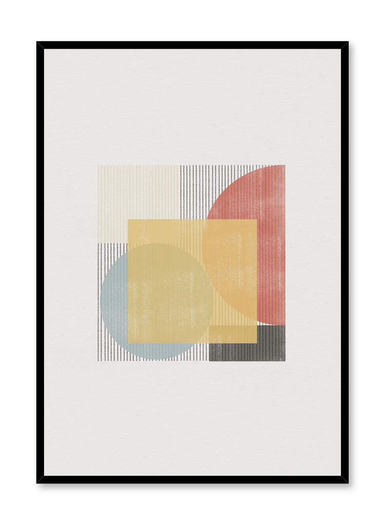 Oh Oskar! This colorful Bauhaus poster is sure to infuse your space (and your life) with fun. We love this art print’s intriguing geometric layers of a yellow square over blue and red circles, and black and beige squared shapes. A layer of fine tone on tone stripes makes this poster’s composition simply captivating.