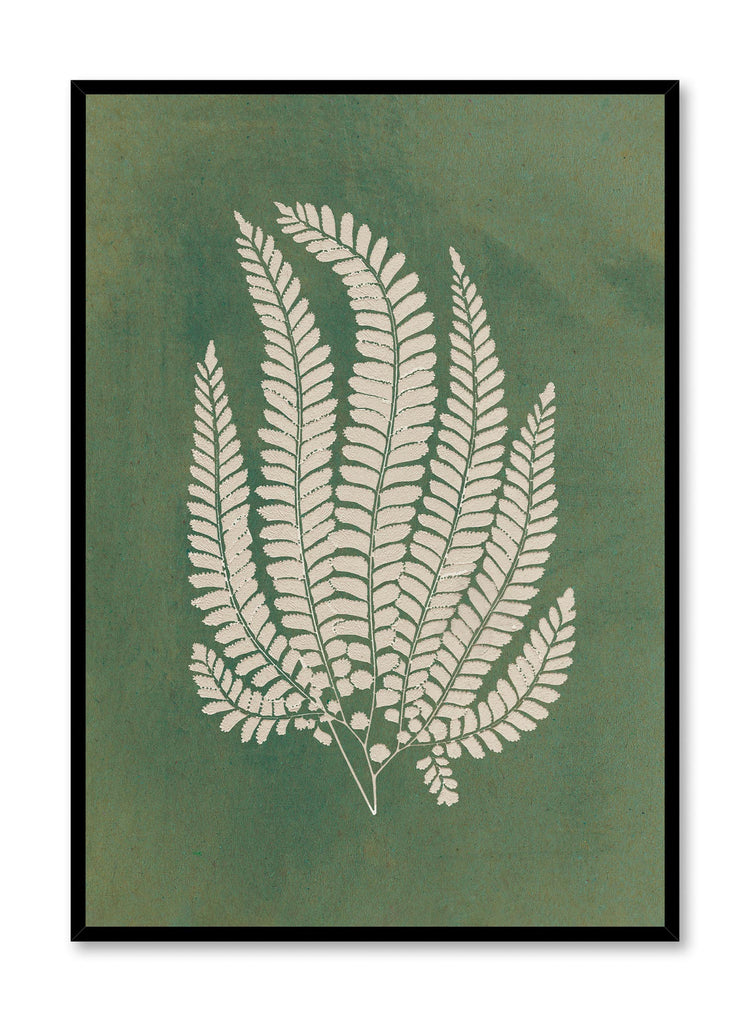The muted green tones and soft, textured finish lend this artwork a vintage-inspired charm. The intricate details of the fern fronds feel organic yet clean, making it a versatile addition to any space.