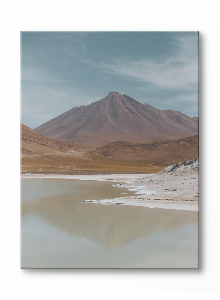 If you're ever in San Pedro de Atacama in Chile, make sure to visit Piedra Rojas. If not, this canvas is the next best thing! This landscape features sand and lake at the foot of a red volcano mountain.