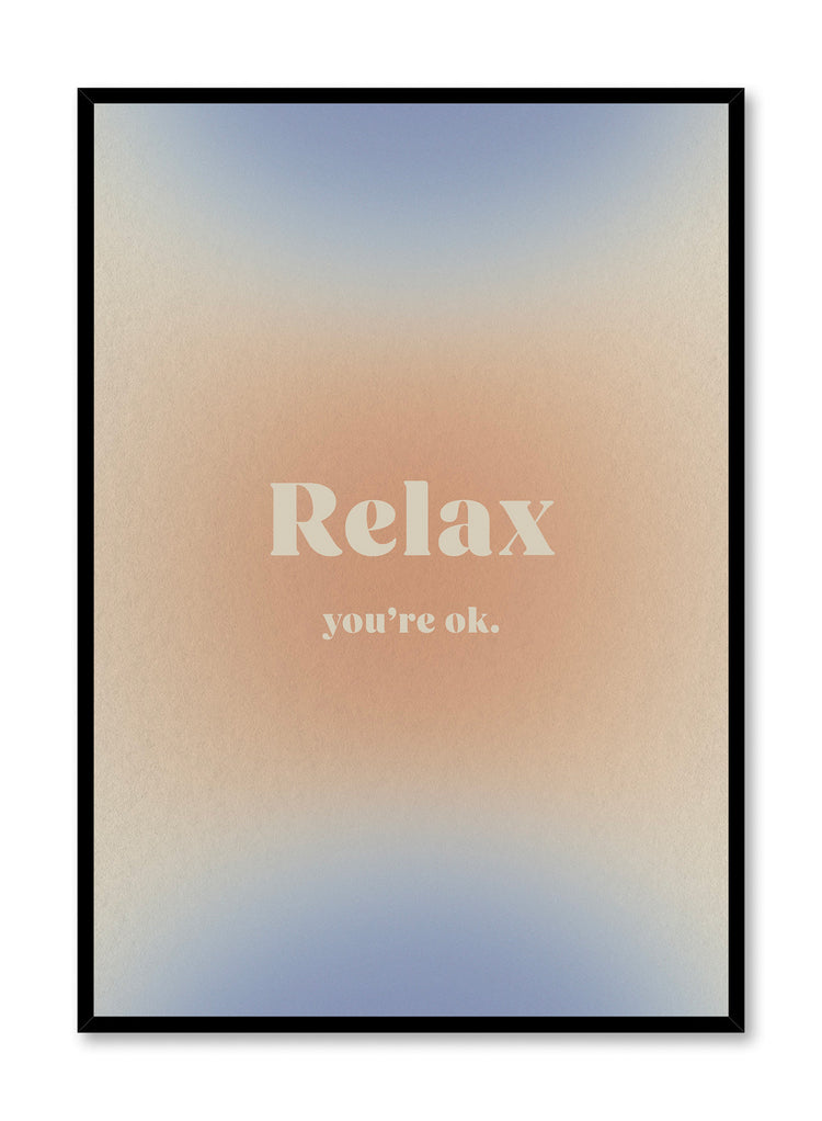 When your mind is racing and your plate is full, remember to Relax (you're ok)! This typography poster combines soothing words with an orange and blue gradient.