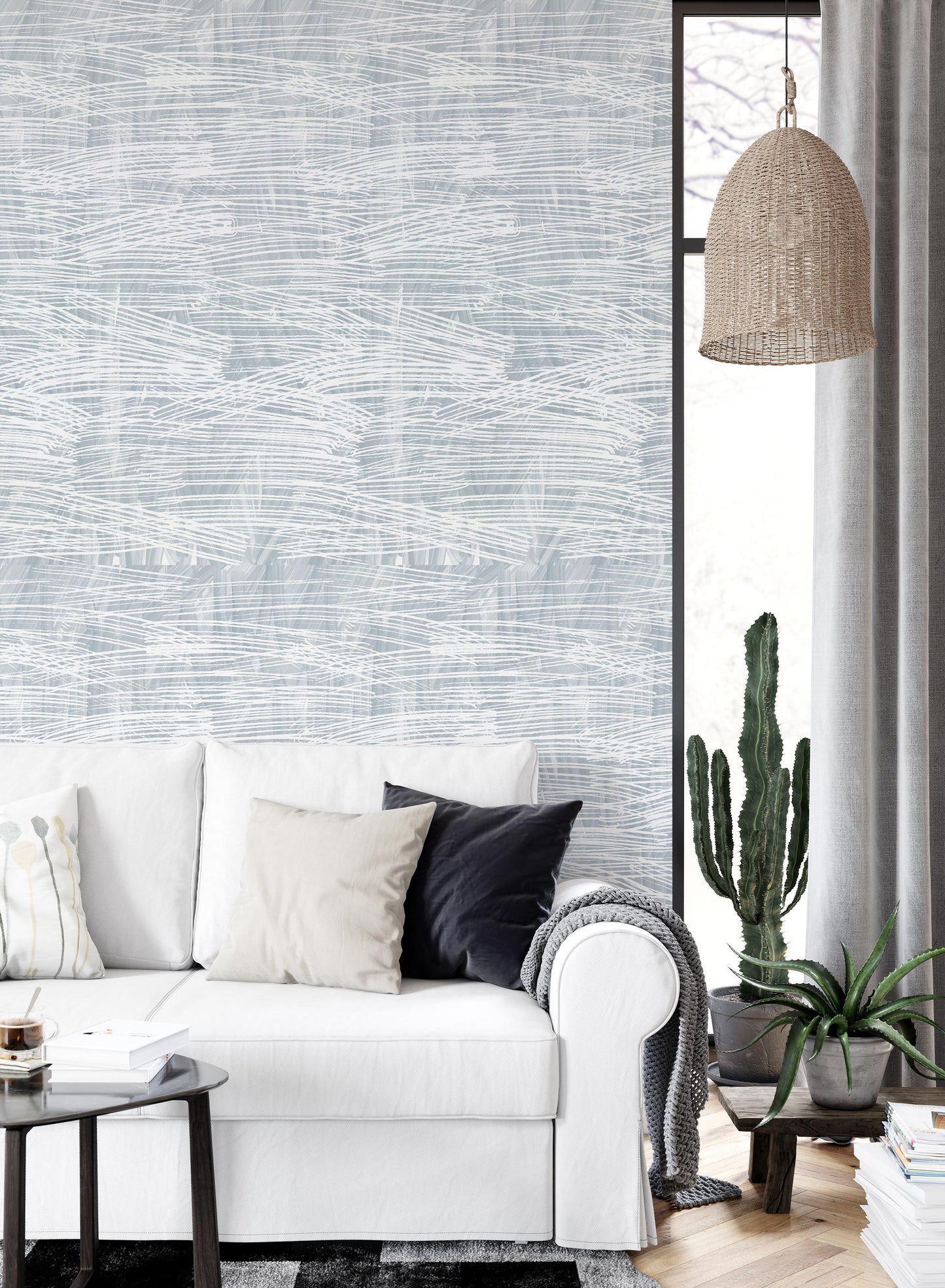 Elevate your space with the ‘Reykjavik’ wallpaper. This design is available in four colors: blue, dark, grey, and beige. In this cool Scandinavian design, fine stripes overlap horizontally, creating the illusion of organic pencil coloring. This delicate pattern will make your empty walls more interesting while fitting in with a more minimalist aesthetic. Find this wallpaper in removable vinyl peel & stick or pre-pasted format today.