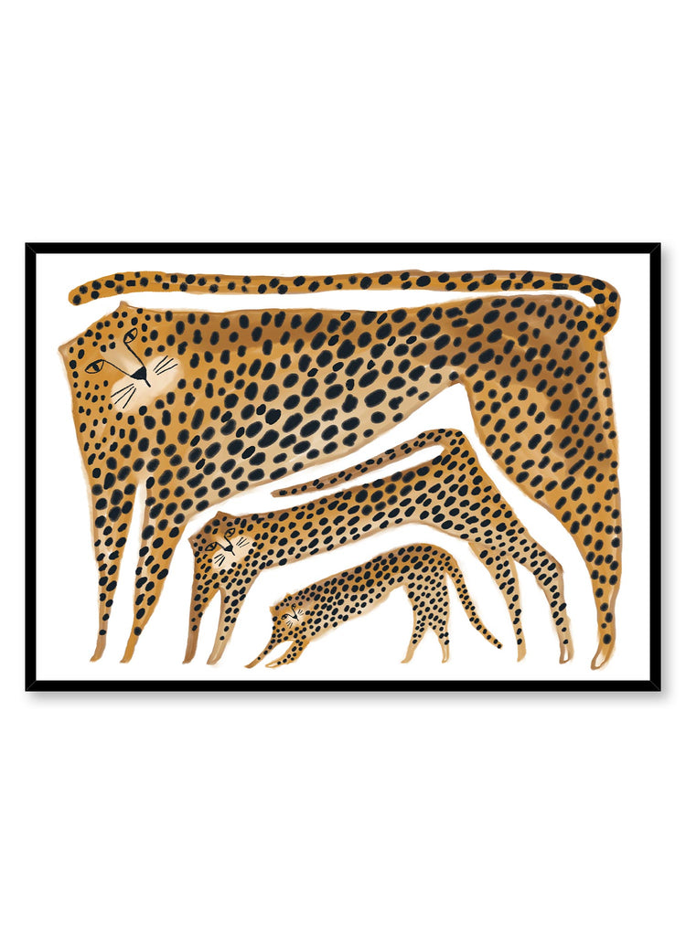 Style didn’t skip a generation in this family! ‘Stylish Family’ features three cheetahs over a white background. This jungle animal illustration is the perfect poster for kids who love wild cats and for parents who love trendy design! Find this animal print and other animal posters for kids online at Opposite Wall.