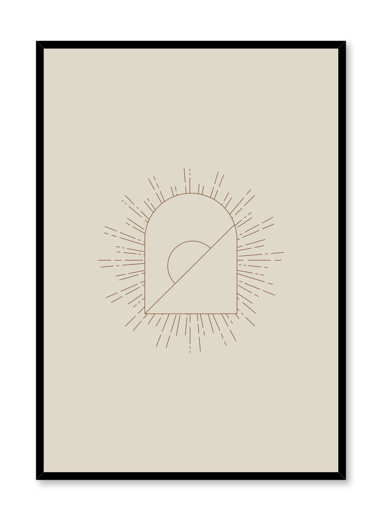 Look into the horizon and admire the brilliant sun from this neutral and modern print.