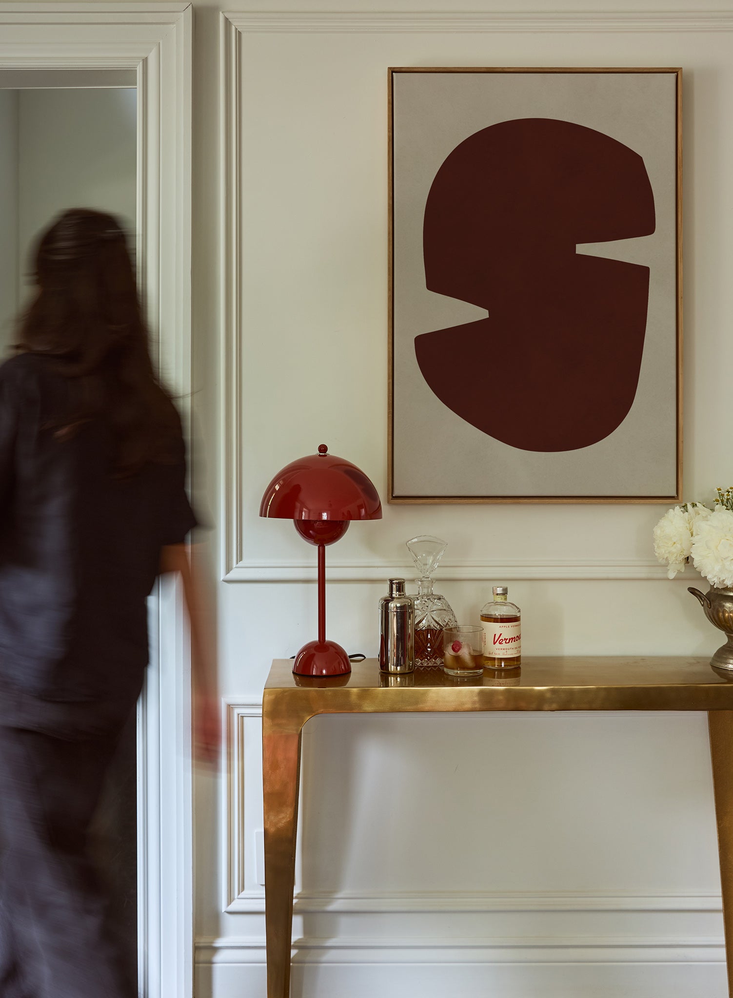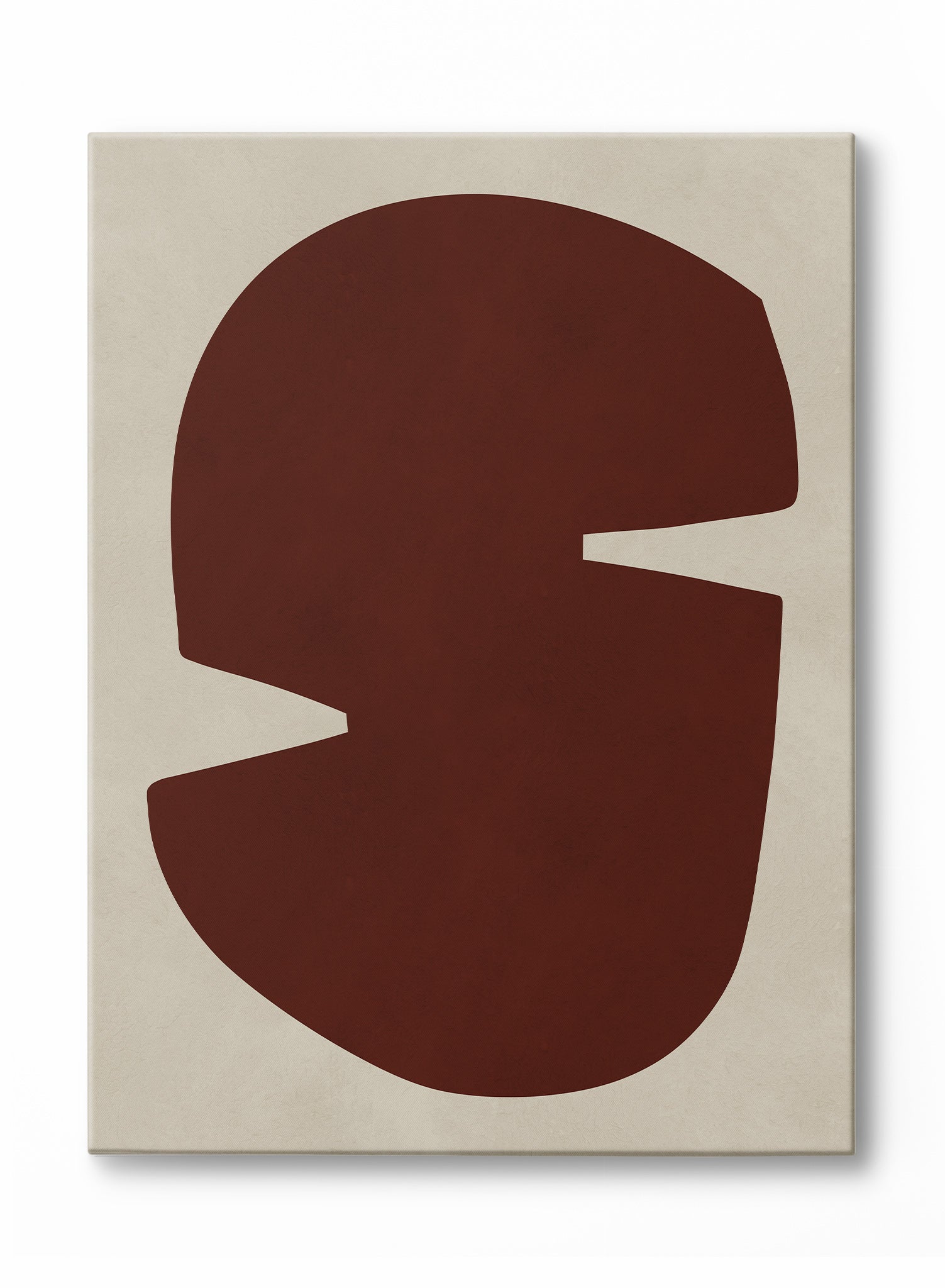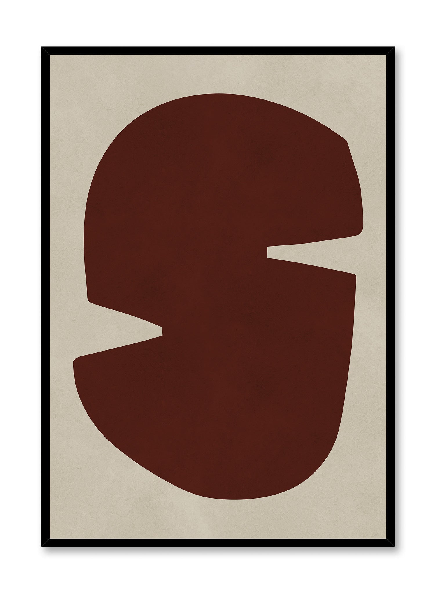 This rich burgundy form dominates the composition with confident geometric presence, its curved edges creating an almost letterform-like silhouette against a soft cream background. Curated for Keefer House, this piece embodies an Asian minimalism influence through its emphasis on negative space and restrained gesture.