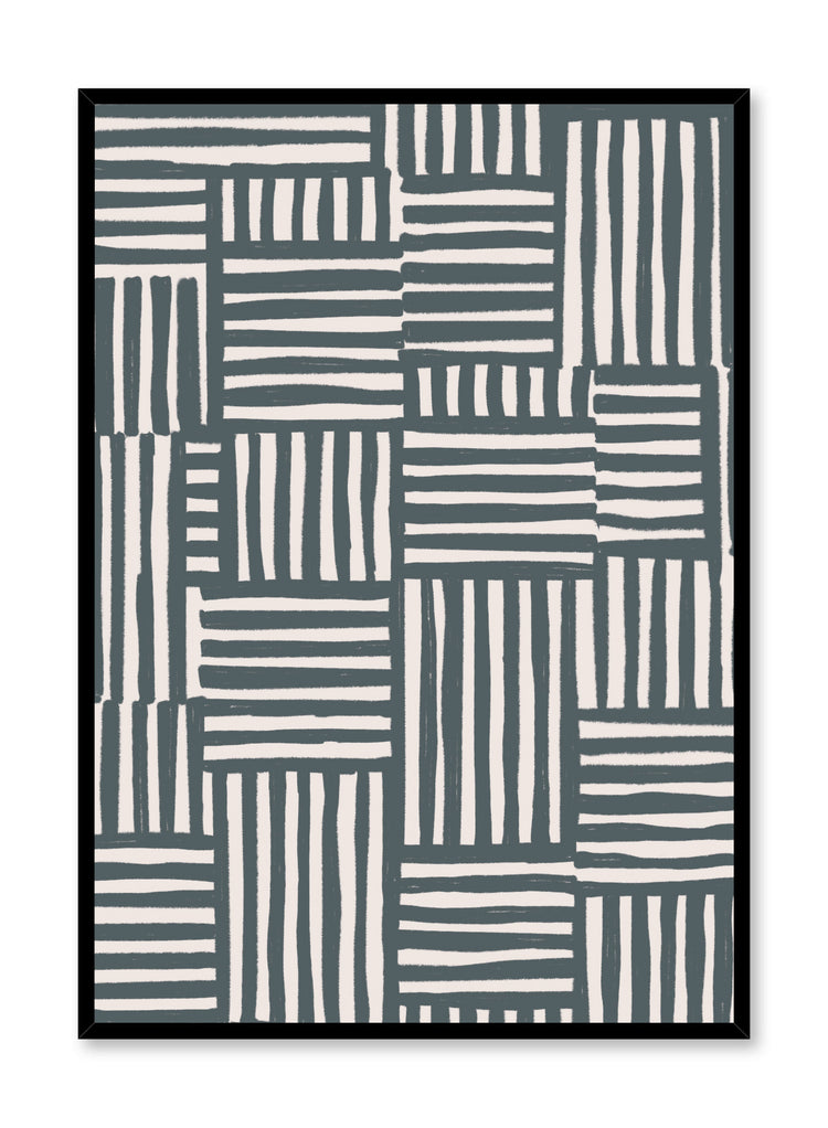 Just like its names suggest, the Two-Toned, Revisited poster is a nod to Two-Toned, one of our most beloved original prints. This playful yet simple abstract design features a composition of horizontal and vertical stripes. This blue and beige pattern makes a bold impact while keeping things sweet.