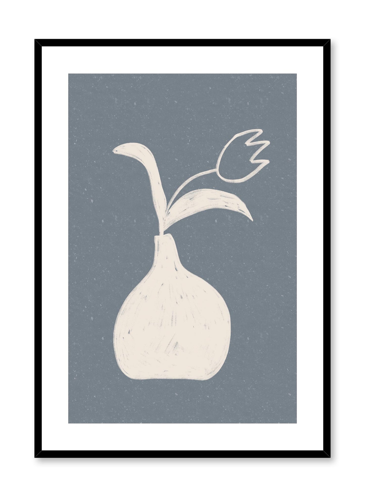 The ‘Vase Vision #1’ poster is a fun take on the still life genre. This abstract print features a textured vase holding a pretty tulip flower. This beige design is contrasted by the poster’s rich blue background. Speckles of beige elevate this print’s composition to a whole new level. Showcase this fabulous botanical print on its own or pair it with the ‘Vase Vision #2’ poster for a stunning duo.