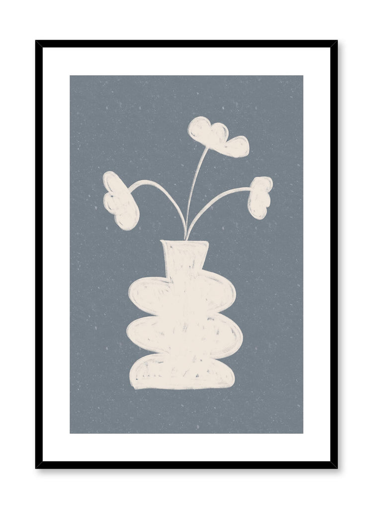 The ‘Vase Vision #2’ poster is a fun take on the still life genre. This abstract print features a funky-shaped, textured vase holding three minimalist flowers. This beige design is contrasted by the poster’s rich blue background. Speckles of beige elevate this print’s composition to a whole new level. Showcase this fabulous botanical print on its own or pair it with the ‘Vase Vision #1’ poster for a stunning duo.