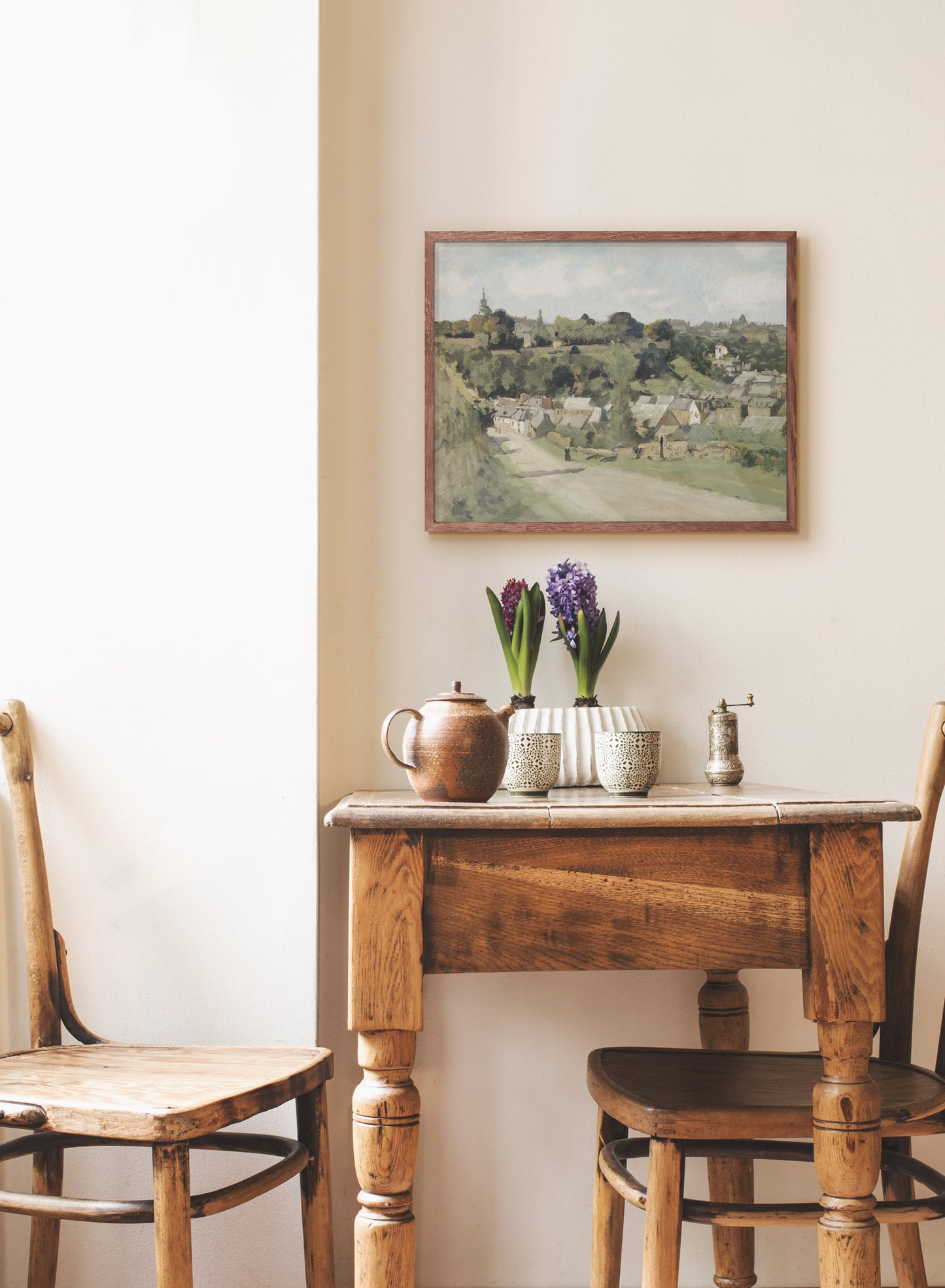 Feeling stressed? Take a glance at George Poggenbeek’s peaceful ‘Walking to the Village’, and you’ll feel instantly calmer! This horizontal painting depicts a quaint countryside village surrounded by trees and greenery.